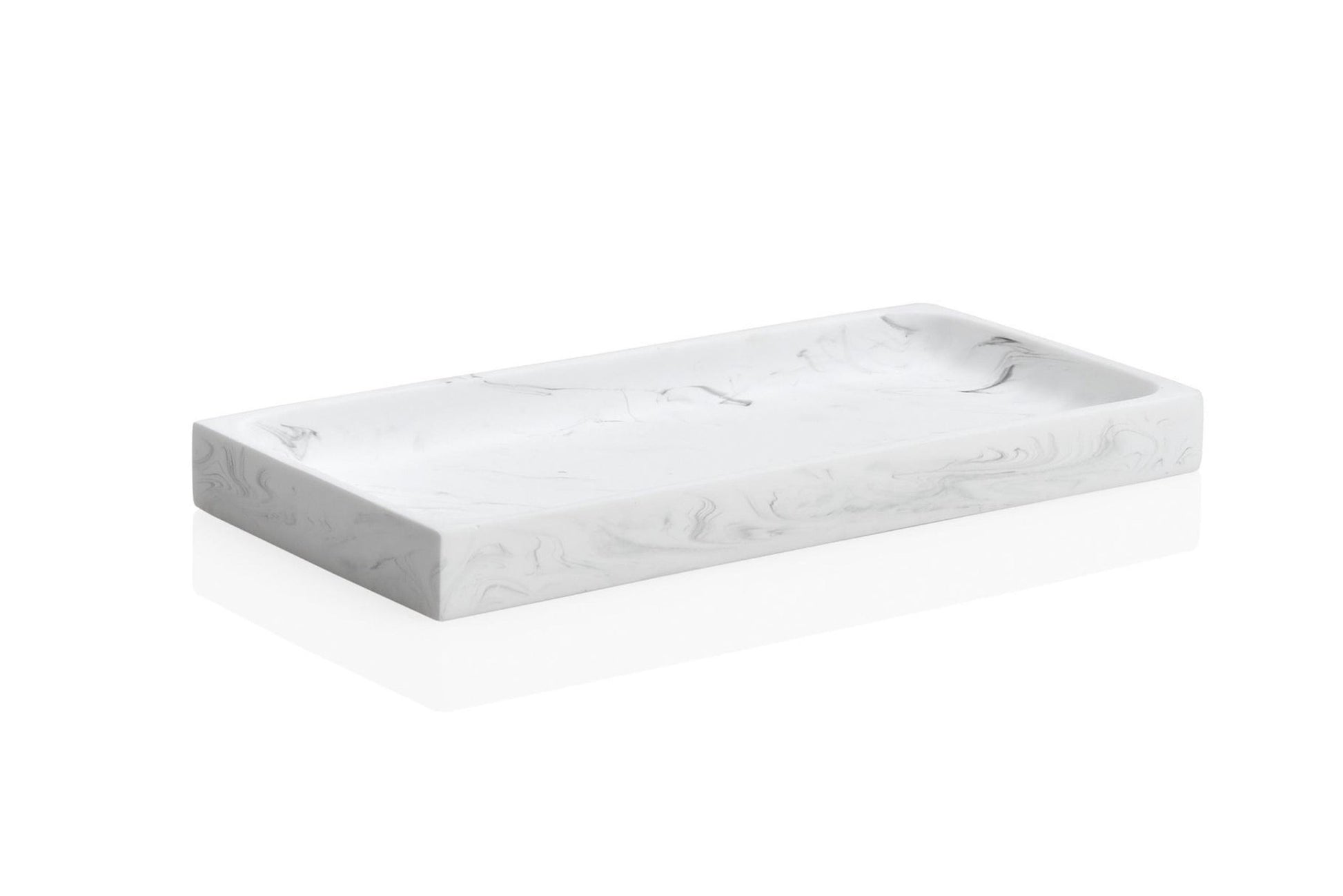 Rechteckiges Tablett mit Marmoreffekt, inspiriert von der Oberfläche von Marmor, aber aus Polyresin , das ihm mehr Leichtigkeit verleiht und es auch macht .