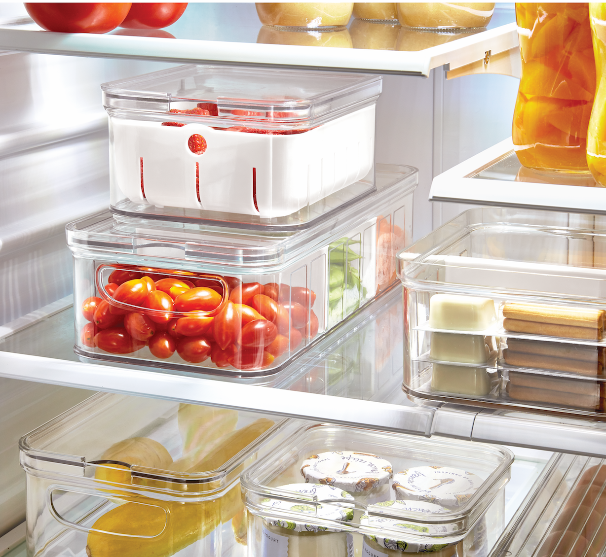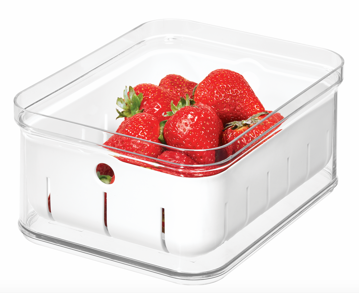 Der Aufbewahrungsbehälter CRISP BERRY BIN von iDesign dient als praktischer Obst- und Gemüsekorb und ist unerlässlich für die Lebensmittelaufbewahrung im Kühlschrank. Der CRISP BERRY BIN hat einen integrierten und herausnehmbaren Korb, der dabei hilft, das überschüssige Wasser abtropfen zu lassen und somit die Lebensmittelhaltbarkeit verlängert. Die CRISP Serie von iDesign lässt sich problemlos mit weiteren Aufbewahrungsbehältern wie der CRISP EGG oder den CRISP I und CRISP II ergänzen. So bleibt das Obst und Gemüse lange knackig und frisch!