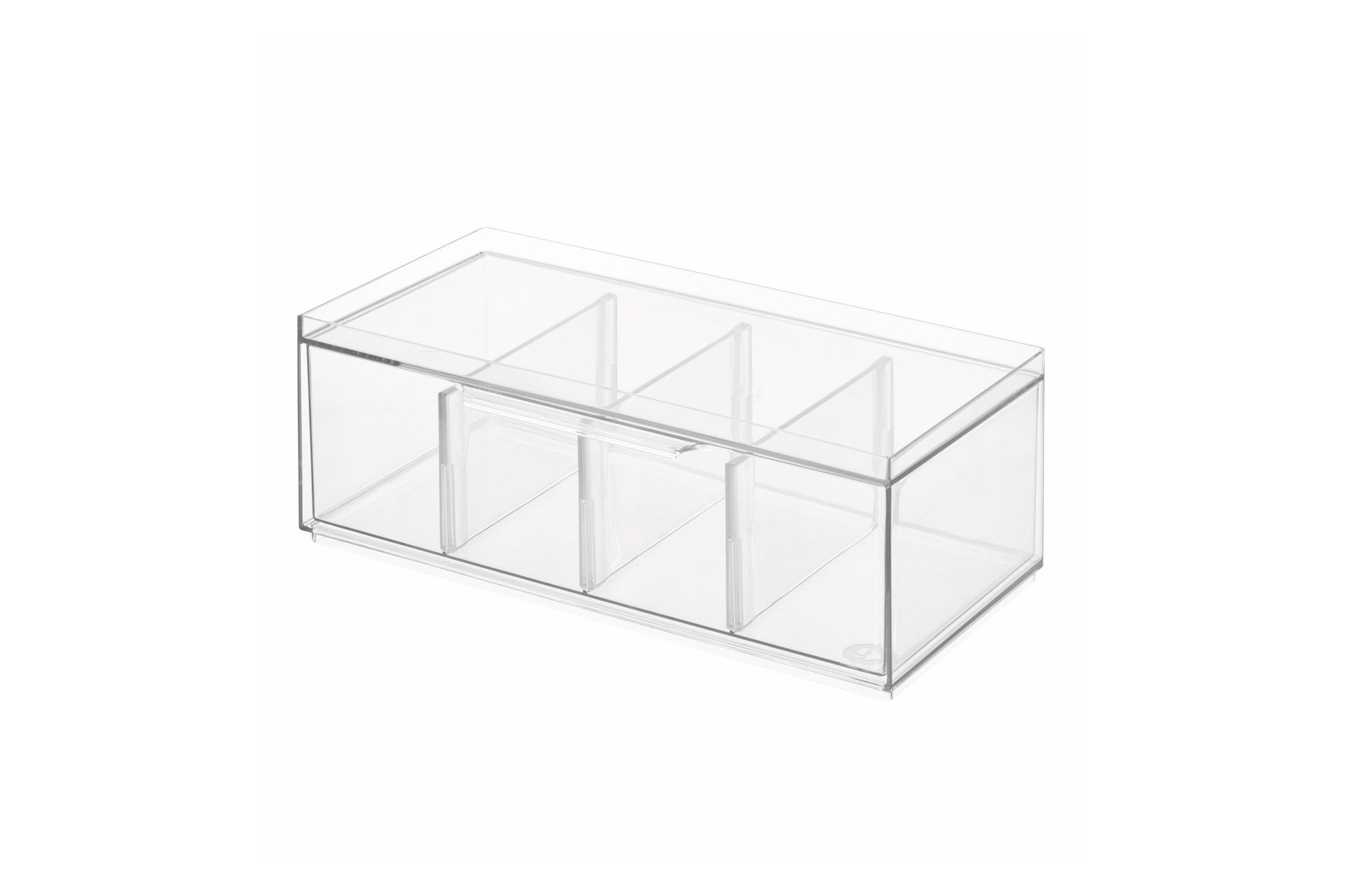 Organisiere deine Küche stilvoll mit der stapelbaren CRISP TEA BINZ von iDesign. Dieser Organizer mit drei Fächern eignet sich hervorragend zum Aufbewahren von Teebeuteln, Zuckerpäckchen, Süßungsmitteln und mehr.