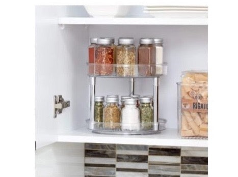 So lazy war Homeorganizing noch nie! Die 2 Stöckige Lazy Susan – unser Must-have für jeden Haushalt. Ob im Vorratsschrank, im Küchen- oder im Badezimmerschrank: Die Lazy Susan ist flexibel einsetzbar und überzeugt zudem durch ihr smartes, durchsichtiges Design. Auf der 2 Stöckigen Lazy Susan von iDesign finden beispielsweise Gewürze, Soßen, Tuben, Cremes und Bastelutensilien ihren perfekten Platz. Bringe Ordnung in deine vier Wände und nutze die Vorteile des praktischen Drehtellers von iDesign.