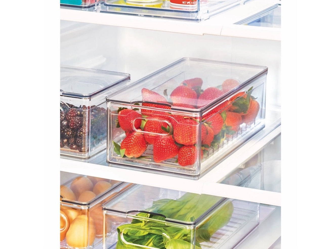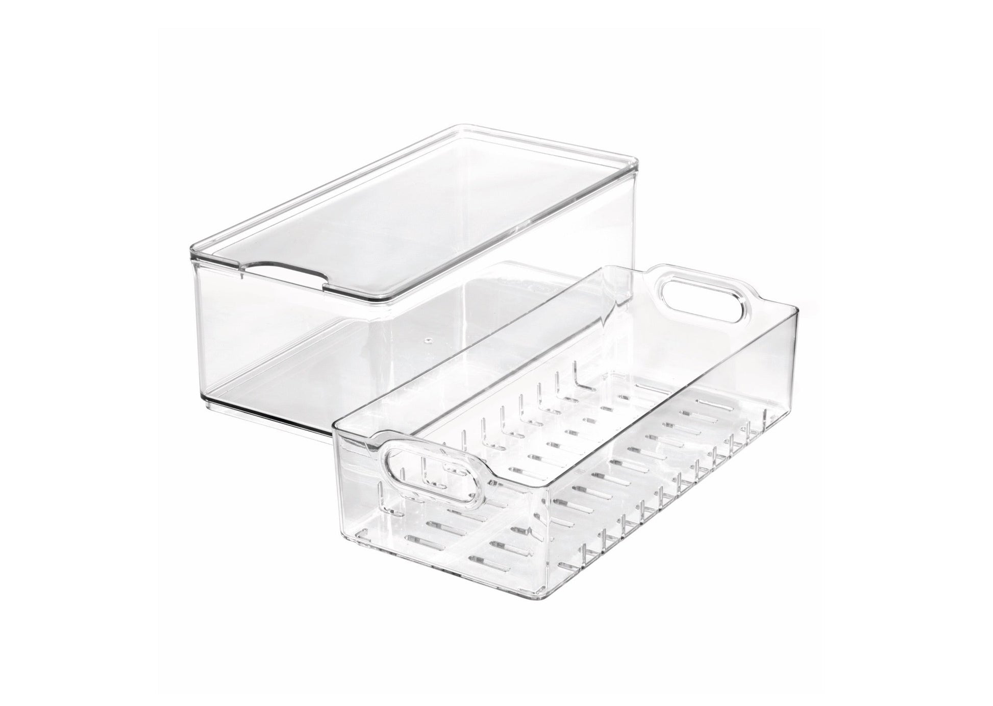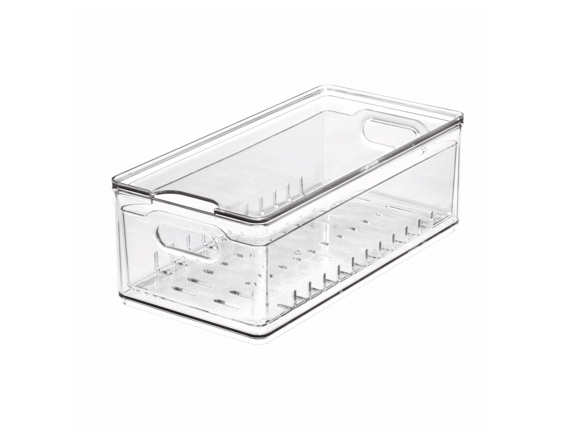 Diese Berry Bin aus der Serie "The Home Edit" von iDesign verfügt über eine herausnehmbare Abtropfschale, um Feuchtigkeit von den Lebensmitteln fernzuhalten, damit z.B. Beeren und anderes Obst länger frisch bleibt. Der Behälter ist komplett durchsichtig, so dass der Inhalt immer gut sichtbar ist. Perfekt modular und stapelbar. Die integrierten Griffe erleichtern, dass Greifen und Mitnehmen. Die Abtropfschale lässt sich zur Reinigung oder zur Verwendung als großes Sieb herausnehmen. Perfekt geeignet für den Kühl- und Gefrierschrank.