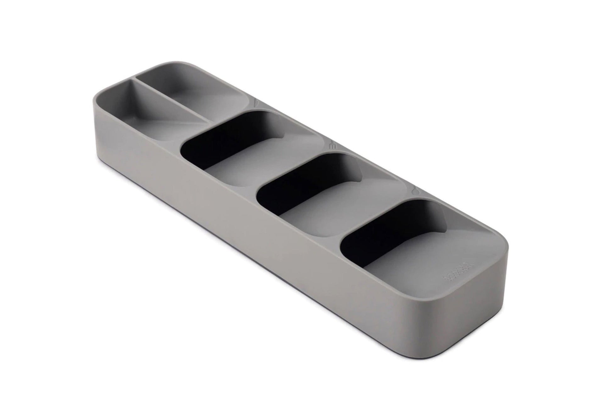 Dieses revolutionäre Design ist eine so einfache Idee, dass man sich fragt, weshalb vorher niemand daran gedacht hat. Durch das Übereinanderschichten der einzelnen Fächer nimmt dieses Besteckset weniger als die Hälfte des Platzes eines herkömmlichen Besteckkastens ein. Das Besteck kann jeweils mit dem Kopf oder dem Griff nach vorne aufbewahrt werden, aber das Design beinhaltet auch praktische Symbole zum einfachen Finden des richtigen Bestecks. Durch einen rutschfesten Untergrund verrutscht der Besteckkasten nicht in der Schublade. Von Hand reinigen und abtrocknen. Für Schubladen mit einer Mindesthöhe von 8 cm geeignet.