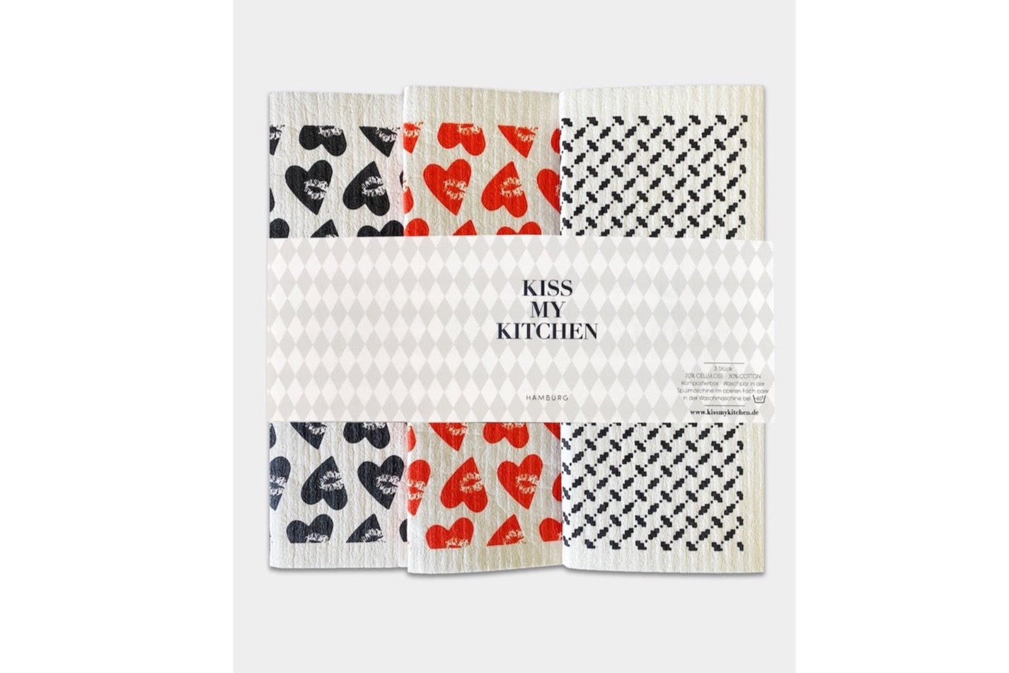 Das 3 er Schwammtuch Set von KISS MY KITCHEN eignet sich auch toll als Mitbringsel und ist die perfekte Ergänzung im Set mit einem passenden Geschirrtuch.