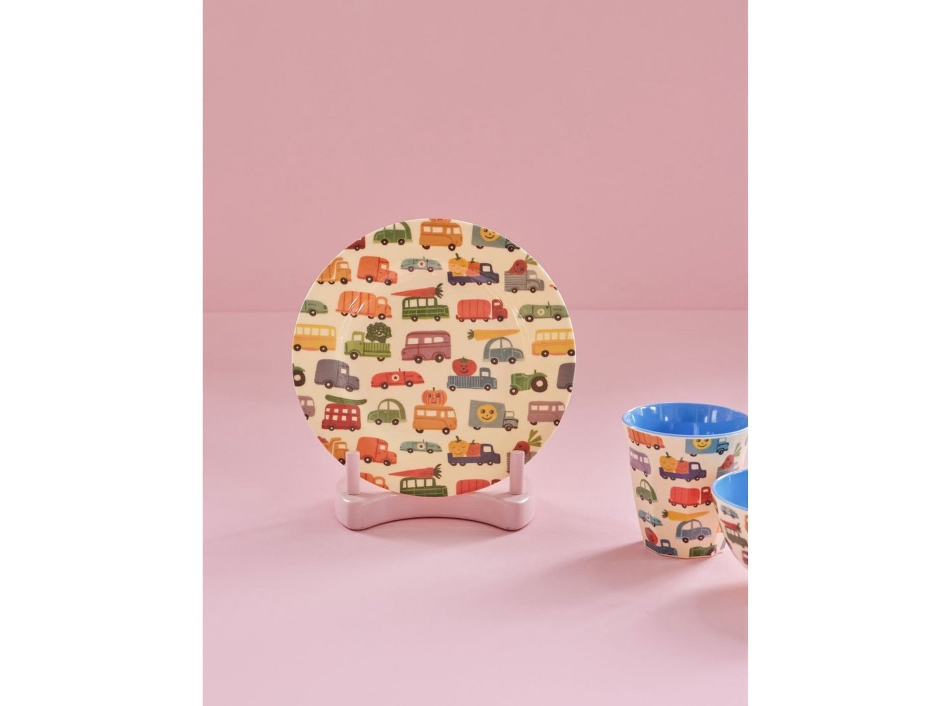 Der klassische runde Melaminteller mit Happy Cars-Print. Der Teller ist praktisch, farbenfroh und perfekt für Frühstück oder ein kleines Mittagessen!