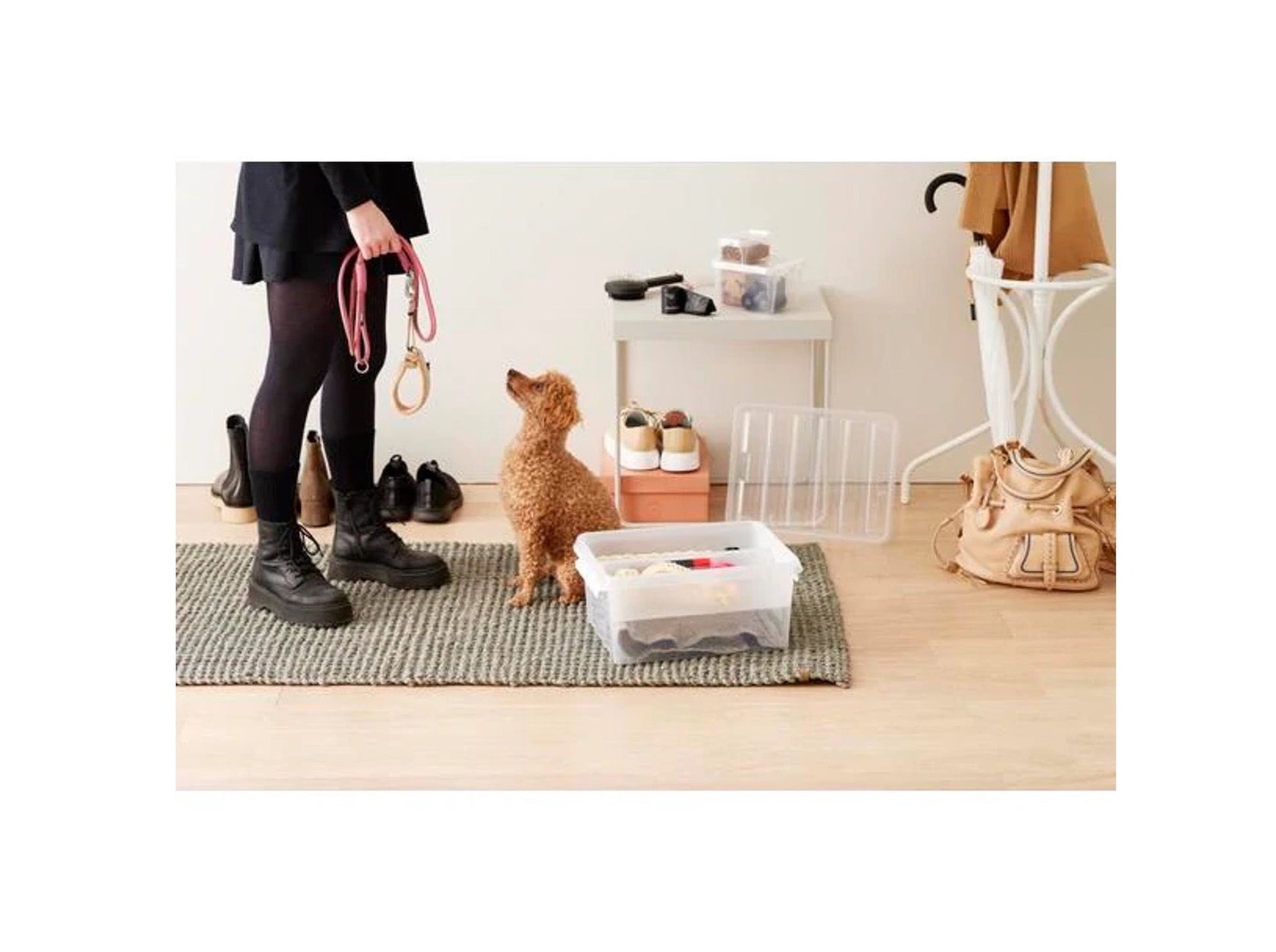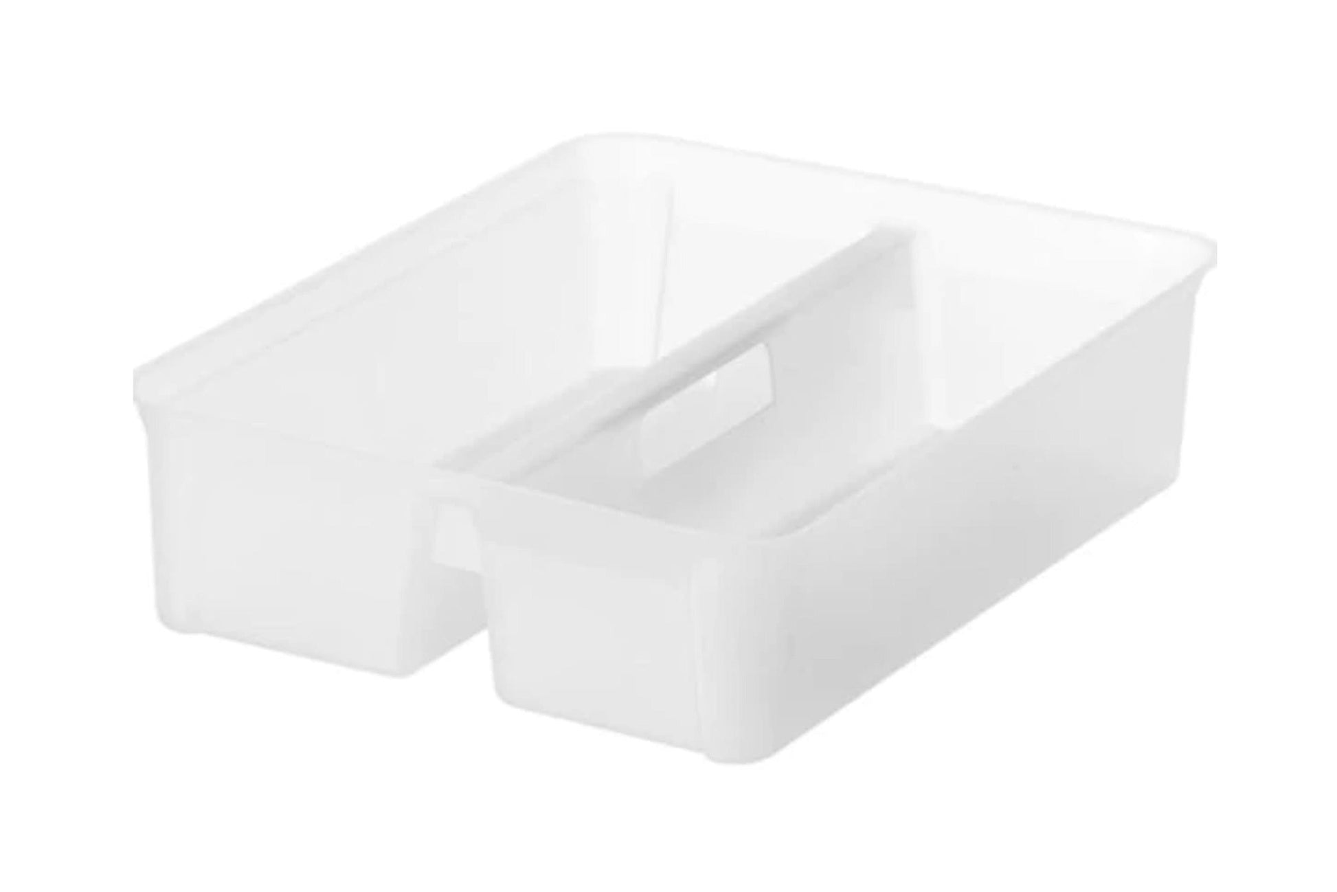 Unser großer Einsatz mit zwei Fächern und Griff hilft dir dabei, kleine Gegenstände im oberen Teil, von sperrigen im unteren zu trennen. Einfach praktisch!