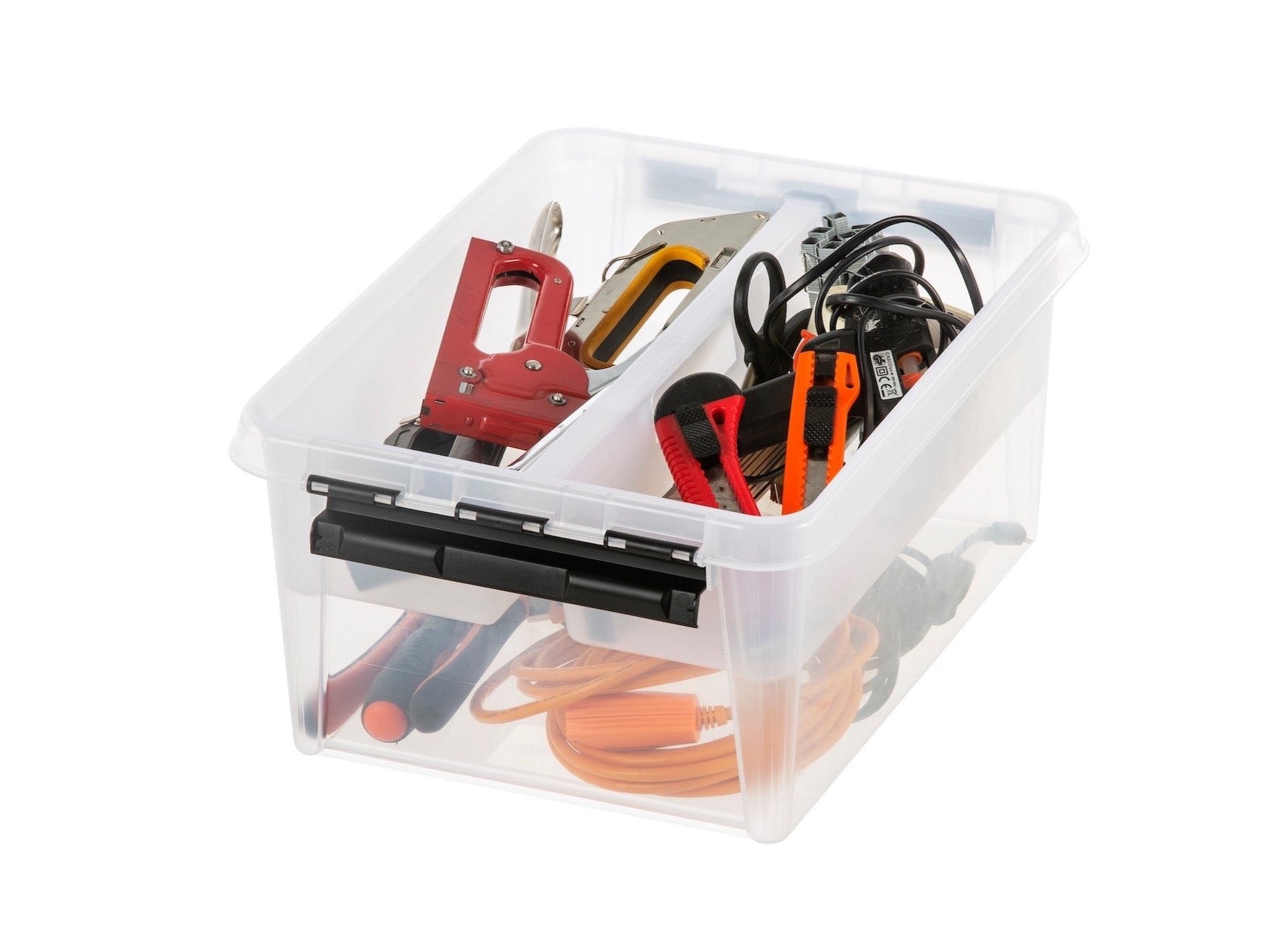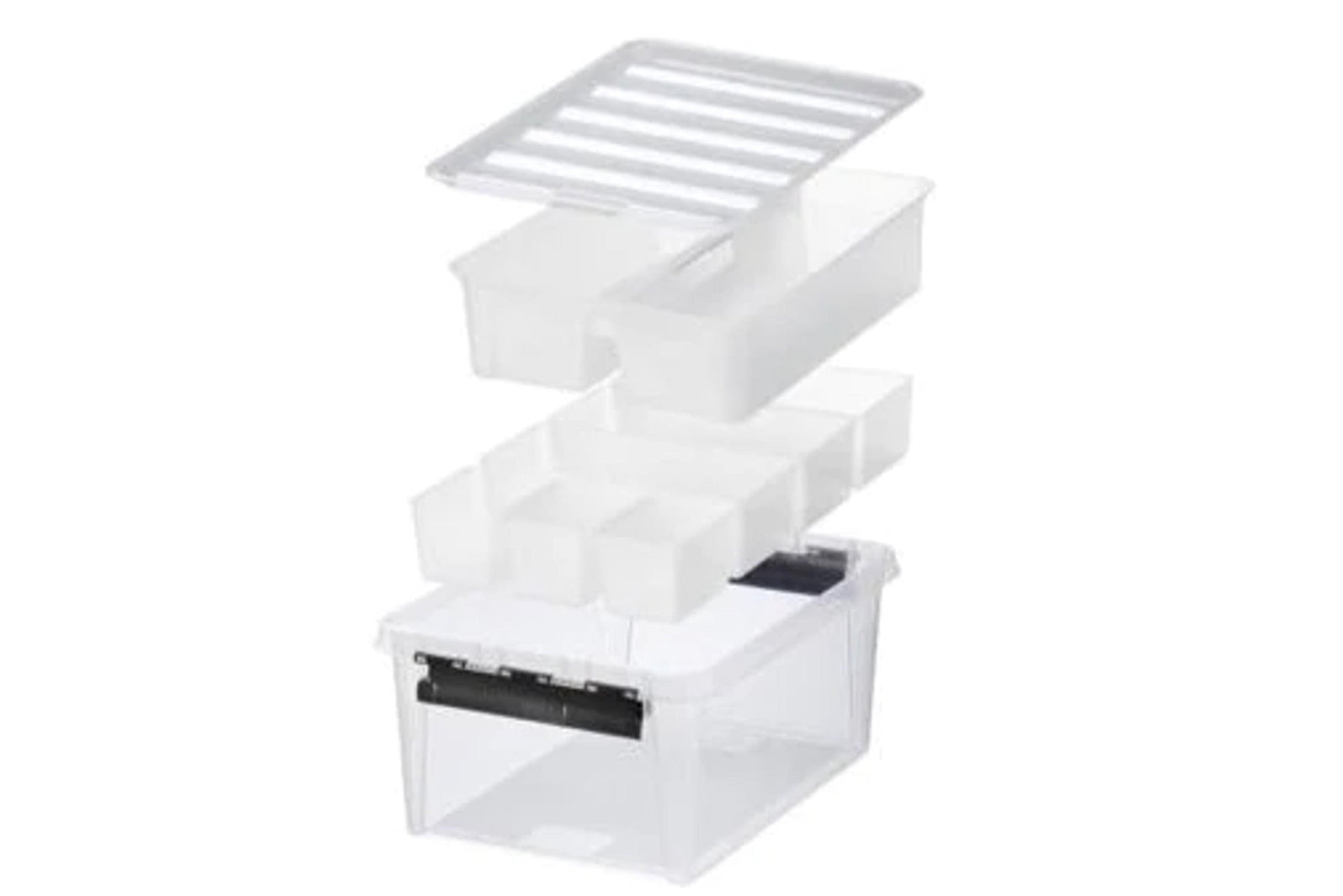 Unsere Aufbewahrungsbox mit sieben Einsätzen - ideal, um kleine Gegenstände geordnet aufzubewahren. Außerdem ebenfalls hervorragend als Werkzeugkasten oder Bastelbox geeignet. Entdecke jetzt die vielseitigen Verwendungsmöglichkeiten unserer Aufbewahrungsbox mit Decke. Starke Klammern sorgen für einen dichten Deckelverschluss.