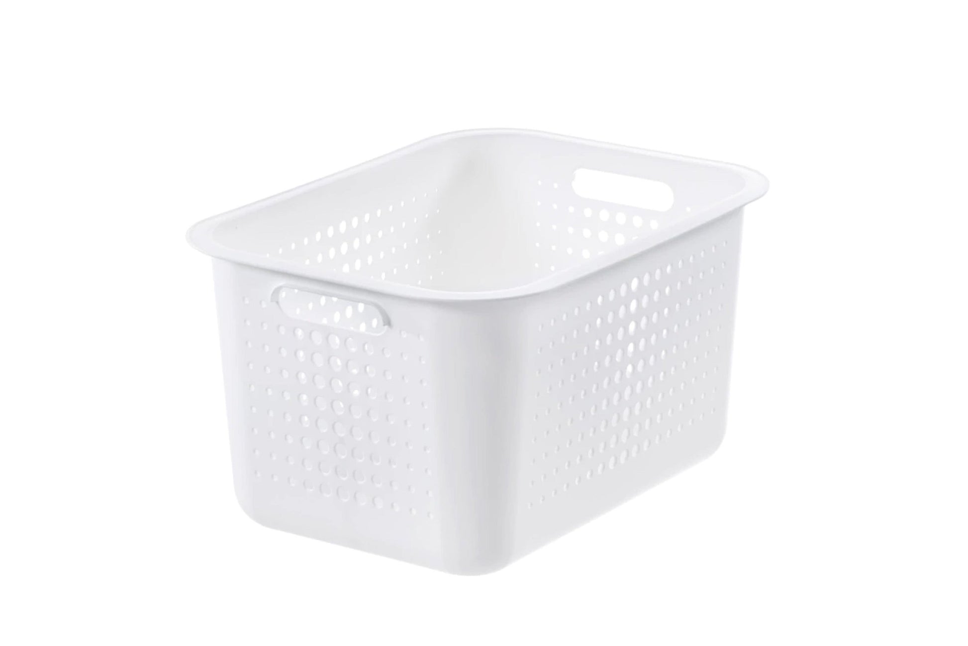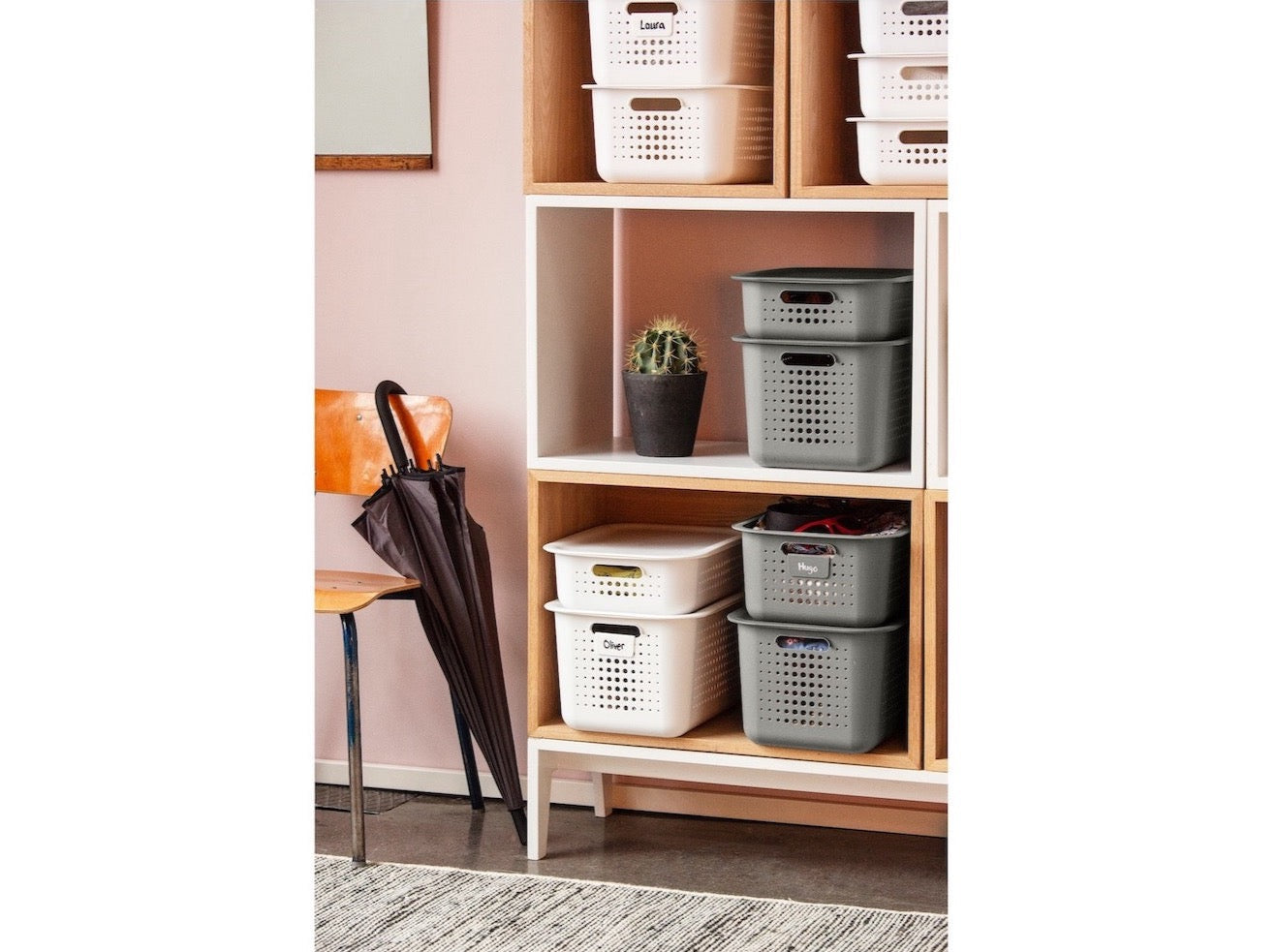 SmartStore Aufbewahrungsbehälter NORDIC L besteht aus recyceltem Kunststoff. Das leichte, langlebige Material ist sowohl für trockene als auch für nasse Oberflächen geeignet. Der Korb eignet sich für jeden Raum des Hauses und die Größe ist ideal, um kleine Gegenstände zu verstauen.