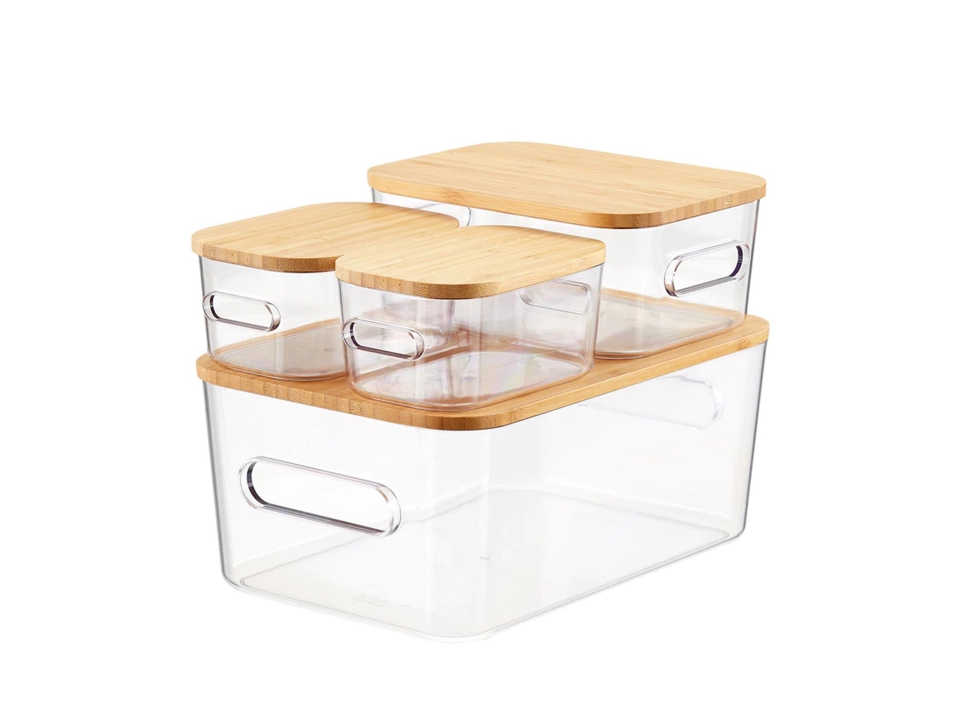 Unser Bambus-Deckel überzeugt nicht nur funktional, sondern auch optisch. Als dezenter Eyecatcher schafft der Deckel eine warme Atmosphäre. Die Aufbewahrungsboxen bekommen dadurch einen völlig neuen Look.