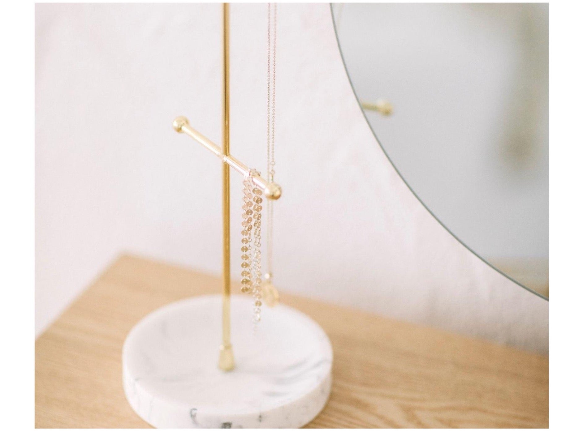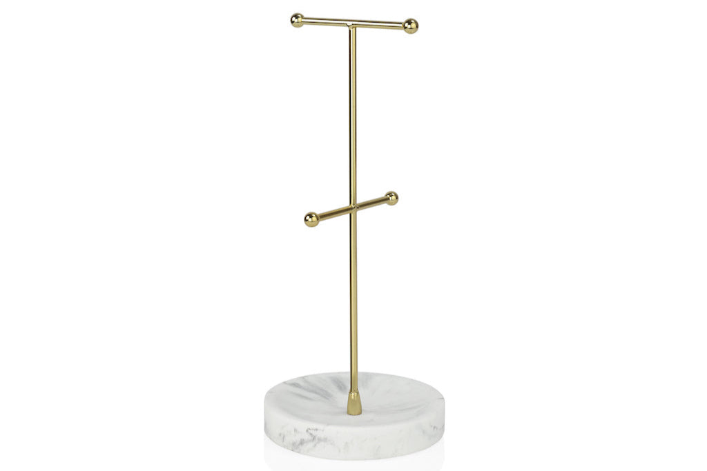 Diamonds are a girl's best friend - ohja! Bei dem ganzen Schmuck sind chaotische Schubladen und verknotete Ketten doch leider keine Seltenheit. Doch damit ist jetzt Schluss: Unser edler Schmuckständer in Marmoroptik ist mit seinen goldenen Details nicht nur ein schöner Hingucker, sondern auch ein echtes Organisationstalent. Auf ihm finden Ketten, Armbänder, Ohrringe und Co. ihren perfekten Platz.