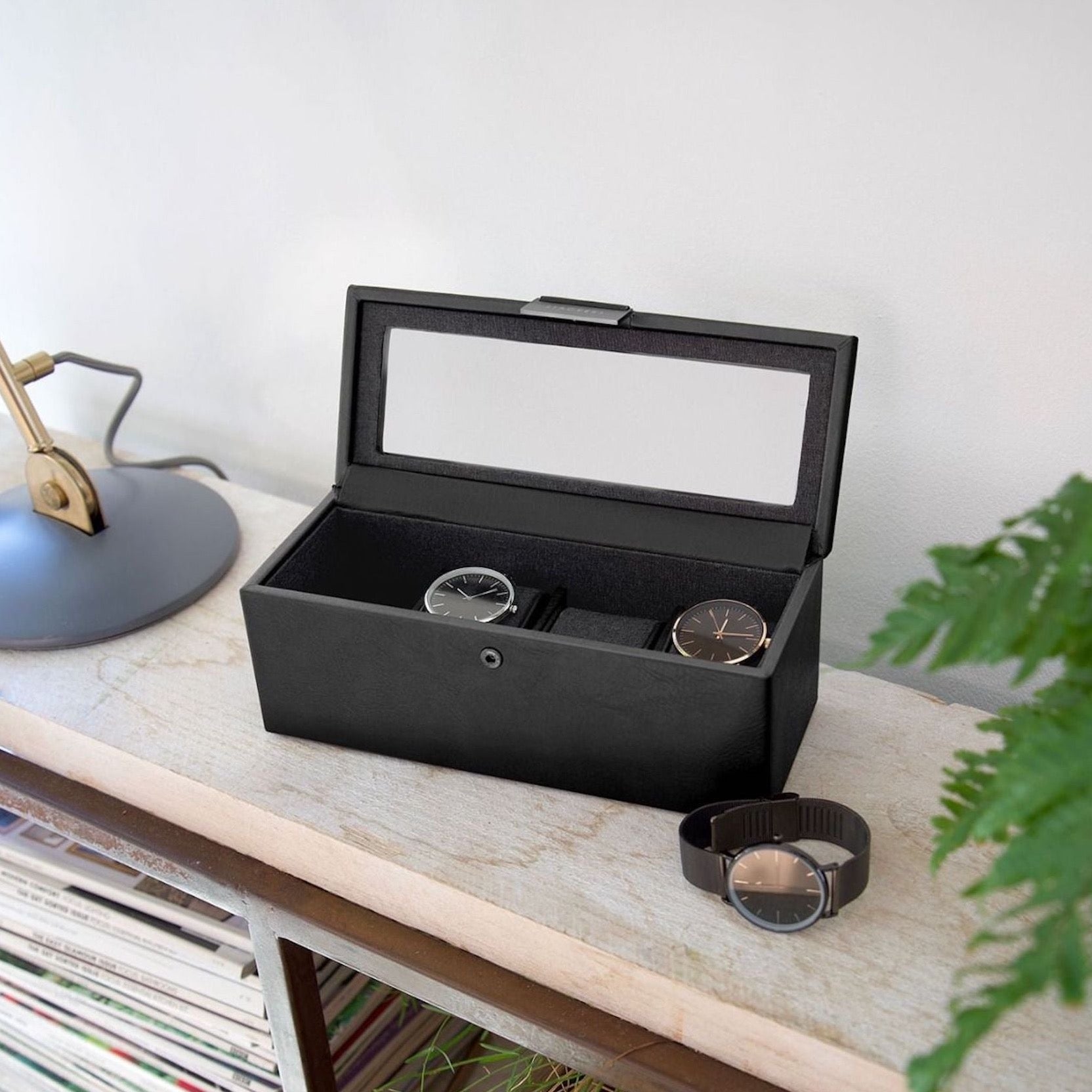 Für den begeisterten Uhrensammler. Halten Sie Ihre Uhrensammlung organisiert und sicher mit einer unserer Uhrenboxen. Sie verfügt über einen klaren Glasdeckel, um Ihre Uhren sicher und sichtbar zu halten, und ein hochwertiges Baumwollfutter mit weichen Uhrenpads, um sicherzustellen, dass Ihre Uhren kratz- und staubfrei bleiben.
