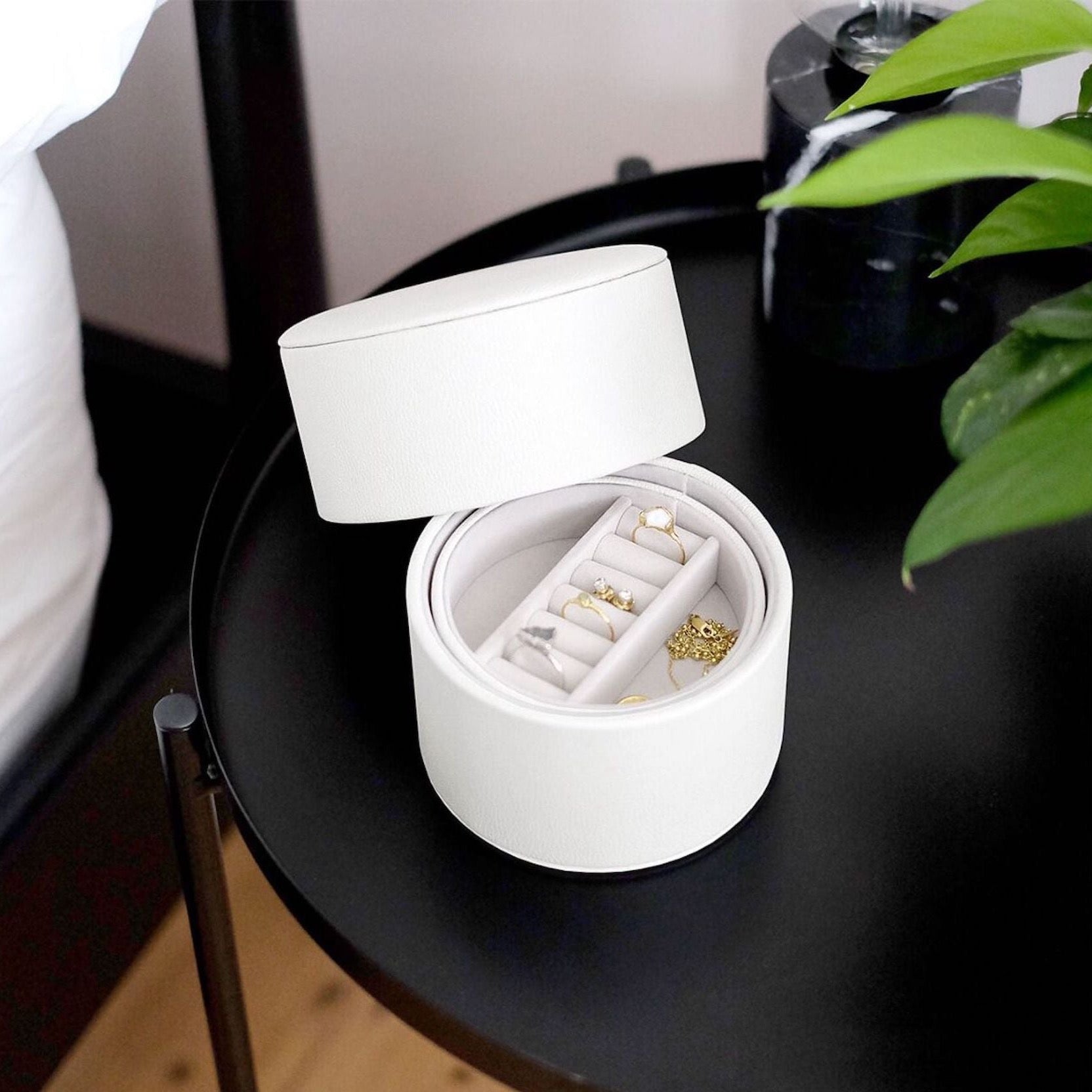 Kompakt, aber praktisch, bietet die Schmuckschatulle Platz für Ringe, Ohrringe und anderen alltäglichen Schmuck. Im inneren der Schatulle befindet sich ein zweites Fach, wo Sie weitere Schmuckstücke unterzubringen können.