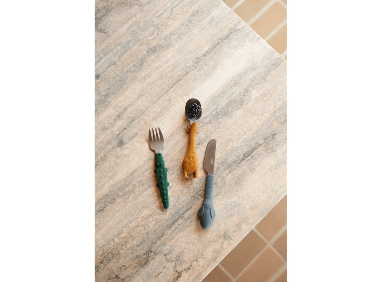 Mit dem Tove Besteckset bringst du Spaß auf den Esstisch. Dieses strapazierfähige Besteck aus Edelstahl mit 3D-Silikongriffen ist perfekt für kleine Hände geeignet. Gut zu greifen regt es die Kleinen dazu an, ihr eigenes Besteck zu nutzen.